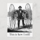 Esta bicicleta antiga da década de 1860 tem uma configuração incomum lado a lado da roda. Ele também usa a força do braço e da perna. A legenda adicionada é "É assim que eu faço!"