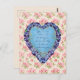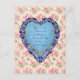"Você deve permitir que eu lhe diga quão ardentemente eu te admiro e amo", famosa citação feita pelo Sr. Darcy quando propõe a Srta. Elizabeth Bennet, do Orgulho e Preconceito de Jane Austen. Aqui em uma placa de Dia de os namorados com um coração azul floral e violeta em um fundo floral rosa.