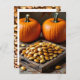 Aqui está um cartão postal de comida bonito que você pode enviar a um amigo ou membro da família no outono com uma receita sobre como assar sementes de abóbora.