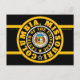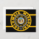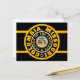 Cartão postal preto com círculos concêntricos a preto, ouro e branco design acima de um retângulo roxo e dourado com "COLUMBIA, MISSOURI CENTER OF THE UNIIVERSE" com Y-NOT-ME. Esta design é um grito para Columbia, Missouri, uma cidade em movimento.