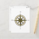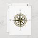 Este cartão postal náutico - tema do barco apresenta uma ilustração clássica de rosa de bússola.