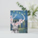 Bela e artística compilação apresenta a Noite Estrelada de Van Gogh sobre o Ródano como fundo com retrato de belo cervo veado com coroa floral em aquarela sobreposta.