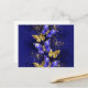 Composição de luxuosas borboletas de joias de safira e ouro em fundo texturizado azul.