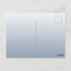 Na frente: Gradiente azul empoeirado com um quadro azul e branco empoeirado. Decorado com flores, rosas em ouro de burlu e rosa. Modelos para seus nomes e detalhes do casamento. Os nomes são escritos com um estilo escrito à mão, letras coloridas de cinza. Fundo: fundo azul empoeirado de gradiente. Dica: Se você não quiser que pareça um cartão postal, clique em personalizar, vá para o verso e remova o divisor e o carimbo de posto.