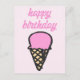 NewParkLane - Cartão postal, com um cone de sorvete fofo e uma citação 'Feliz Aniversário' em uma tipografia de script rosa quente divertida, contra um fundo rosa suave.
