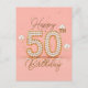 Celebre o jubileu de ouro da vida com um cartão postal que seja tão especial quanto merece ser festejar os 50 anos. Imagine isto: um design deslumbrante que é pura elegância envolta em festa. O "50" em negrito, brilhando como pérolas sob o brilho de uma moldura dourada, é uma peça central que fala de um marco digno de celebração. Confetes dourados dançam ao redor, misturando-se com balões brancos arejados, criando a harmonia perfeita de sofisticação e alegria.
