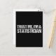 Confie em mim, sou um Estatistico escrito em branco sobre um fundo negro. Um presente de ocupação legal para alguém que faz coleta e análise de dados. Essa profissão usa estatísticas para tomar decisões.