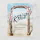 Essos cartões-postais facilitarão a resposta dos seus convidados ao seu convite de casamento. O design apresenta uma bela pintura em aquarela de um caramanchão de madeira flutuante adornado com rosas rosa e branca em uma praia imaculada. O cartão inclui um prazo para resposta, espaço para um endereço web para que os convidados respondam online se preferirem e um formulário retornável para indicar o número de convidados e suas escolhas de refeições.