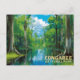 Vibrant, stylized travel poster illustration depicting the lush, towering old-growth bottomland hardwood forest and mirrored waters of Congaree National Park, South Carolina. Captures the unique beauty of the floodplain forest ecosystem. Ideal for nature lovers, South Carolina travelers, and collectors of retro WPA-style park artwork.