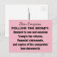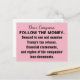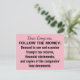 Texto: Caro Congresso, Siga o Dinheiro. Exija para ver e examinar as declarações fiscais, demonstrações financeiras e cópias dos documentos de empréstimo de suas empresas. Texto preto em fundo rosa. #IdesOfTrump #IdesOfTrump #IdesofTrump #TrumpTaxesMarch #TrumpTaxes A resistência continua nos Ides do Trump, durante a Marcha do Trump Taxes e todos os dias.