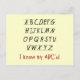 Eu conheço o papel e o design de texto alinhados do meu ABC com a impressão em estilo infantil que contém todo o alfabeto em letras maiúsculas e texto vermelho que diz "Eu conheço o meu ABC!".