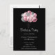 Um convite de festa cartão-postal com uma ilustração de um conjunto de balões em cores rosa e cinza prata.