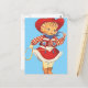 Cartoon vintage adorável de uma menina loira em uma roupa vermelha de vaquinha