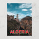 Uma ponte suspensa passa por um desfiladeiro profundo, conectando penhascos rochosos sob um céu parcialmente nublado. A palavra "ARGÉLIA" aparece de forma destacada na parte inferior em letras vermelho a negrito.