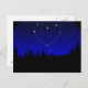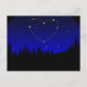 Um céu noturno de montanha com uma bonito constelação estelar em forma de coração num cartão postal.