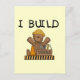 Design de carneiro de construção T-shirts, canecas, cartões, cartazes, autocolantes, capuzes, ímanes e muito mais, com um ursinho de pelúcia giro, com um chapéu de duro amarelo e uma caixa de ferramentas e texto com a seguinte redação: "Eu construo"!