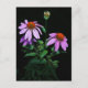 Uma imagem distintiva de botões e flores de um violeta contra um fundo escuro.