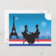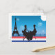 Uma silhueta de um vinho casal romântico contra um pano de fundo da Torre Eiffel em Paris. Os fogos de artifício estão a explodir no céu. As cores da bandeira francesa estão na parte inferior. Personalize este produto com um nome ou mensagem para torná-lo verdadeiramente exclusivo