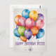 Cartão postal de Blocos Feliz de Aniversário Personalizado, pode ser usado como convite preto para a festa de aniversário. balões arco-íris hélio flutuando fácil de personalizar editar nome ou texto de celebração "crie seu próprio" Enviar desejos animados de aniversário com este cartão vibrante de saudação com tema de balão! Apresentando um monte de balões coloridos de hélio em uma paleta de arco-íris, este design divertido é perfeito para crianças, adolescentes ou adultos. Personalize facilmente a frente com o nome do destinatário ou sua própria mensagem de celebração usando as ferramentas de edição do Zazzle. Quer você esteja enviando amor de aniversário, convites para festas, ou notas de obrigado-você, este cartão certamente iluminará o dia de qualquer um. **Recursos do produto:** - Tamanho: Cartão de saudação padrão de 5" x 7" - design de cor de Cheio com texto frontal editável - Grupo arco-íris de balões de hélio flutuante - dentro de Vazio (ou adicione sua própria mensagem) - Excelente para aniversários, festas ou comemorações Design de seu próprio cartão alegre e envie uma explosão de cor com um toque pessoal!