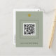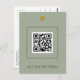 Se você está procurando estilo em um orçamento, aqui está. Este design minimalista tem apenas seus nomes, um coração de folha de ouro falso e um código QR. Este será um link para o seu site de casamento onde seus convidados podem RSVP, escolher suas opções de menu, música favorita, etc. Para aqueles que não têm um smartphone, você pode dar a eles o site na parte de trás disto com uma breve mensagem, conforme o exemplo. Incluído é uma fonte de assinatura para seu fechamento. Isso pode ser excluído e você pode escrever manualmente se preferir. Se desejar, pode colocar o endereço do convidado em vez das linhas. Poupando mais tempo. Isto tem um fundo verde sábio.