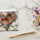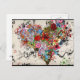 Uma colagem vibrante em forma de coração rebenta com designs florais intrincados e padrões giratórios. O trabalho de arte apresenta uma mistura de flores coloridas, formas abstrato e pontinhos, criando uma composição dinâmica e viva.