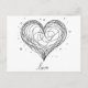 Cartão Postal Coração de Arte em Linha Cômica com "Amor"
