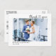 Cartão de Agradecimento de Casamento com Foto do Noivo e da Noiva com Coração de Caligrafia Simples Minimalista
