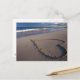 A mão desenhou o coração na areia. Praia tropical com ondas sendo lavadas na praia.