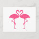 Cartão Postal Coração Flamingo, dois flamingos rosa no amor