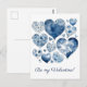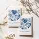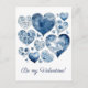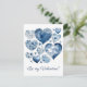 Cartão Postal Coração Floral Azul Delft Personalizado para o Dia