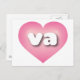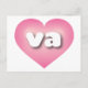 Este cartão postal apresenta um coração rosa elegante e legal com um centro lavado em branco contendo as letras minúsculas arredondadas, brancas e em negrito va, uma abreviação divertida para Virgínia, o estado do antigo domínio. O verso do cartão está em branco, aguardando seus sentimentos manuscritos ou texto personalizado.