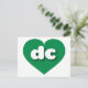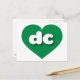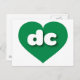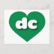 Este cartão-postal apresenta um coração verde, em forma e vibrante, contendo as letras maiúsculas negros, brancas e arredondadas dc, uma abreviação lúdica para o Distrito de Colúmbia. O reverso do cartão postal é vazio, aguardando seus sentimentos manuscritos ou texto personalizado.