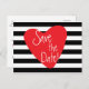Cartão Postal Coração Vermelho Branco Preto Listrado. Personalize com qualquer texto para qualquer evento.