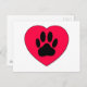 Cartão Postal Coração Vermelho Com Impressão De Pata De Cão