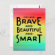 Design da Tipografia Negra com letra de safra e palavras, "Você é BRAVE e BONITA e INTELIGENTE." O fundo é um padrão colorido do arco-íris.