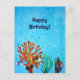 Brilhante e colorido Salve o cartão postal Data. Personalize-o com sua data, nome, evento, etc. Arte original de Minerva Bloom de um recife de coral com peixes nadando sobre um fundo azul-turquesa brilhante.