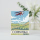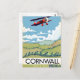 Cornwall Para um Intervalo, bela arte de impressão de pôster de viagem em estilo vintage de um avião biplano vermelho estilo retrô voando sobre a paisagem.