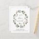 Este anúncio de mudança de endereço elegante e moderno apresenta uma coroa de água-forte feita de folhas e bagas verdes escuras em um fundo branco. A tipografia de letra moderna diz "mudamos", e há espaço para adicionar seu nome e informações do novo endereço.