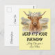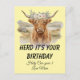 Celebre um marco especial com esta vaca das Terras Altas em aquarela rústica. Com uma coroa floral caprichosa e uma encantadora paisagem escocesa, este design inclui uma mensagem engraçada "Rebanhos é o seu aniversário". Personalize facilmente a idade e o nome para um toque personalizado que qualquer amante de animais de fazenda irá adorar.