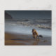 Cartão Postal Correndo com o Brindled Lurcher Greyhound na praia