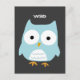 Cartão-postal de Coruja Azul, "Quem". O texto pode ser personalizado. Um cartão postal divertido para correio de negócios e pessoais. Visite o Doodle World de Jenn para ver mais cartões postais de animais e produtos divertidos com esta coruja fofa.
