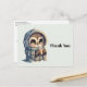 Cartão Postal Coruja Bonita segurando café Obrigado