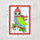 Vestindo um cachecol vermelho e branco listrado e chapéu, esta coruja colorida de inverno está toda vestida para comemoração de feriado. O fundo é flocos de neve azuis em branco com uma borda vermelha.