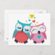 Cartão Postal Coruja casal com corações