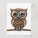 Cartão Postal Coruja Castanho Bonita Fluffy com Óculos de Leitur
