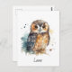 Envie um sorriso a um amigo ou familiar com este cartão postal de coruja em aquarela adorável. O design apresenta uma coruja gentil e de olhos arregalados em um estilo artístico suave, tornando-o uma maneira encantadora de dizer olá, enviar um agradecimento ou compartilhar uma memória especial. É uma maneira doce e simples de alegrar o dia de alguém.