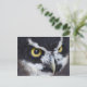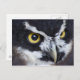 Cartão-postal com uma foto de perto de uma coruja esboçada e branca. Pressione o botão 'personalizar' acima para personalizar e personalizar o item escolhendo um estilo diferente, alterando a cor e o tamanho ou adicionando seu próprio texto e imagens.