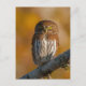 Cartão Postal Coruja Pigmeus contra cores de queda