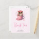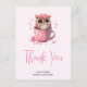 Cartão Postal Coruja Rosa Fofa em um Xícara Obrigado