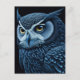 Cartão Postal Coruja Séria Azul e Preta